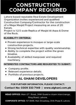 AL Ghani Developers Lahore Pakistan Jobs 2026 – Apply Online (Posted Date: 01, Feb)
