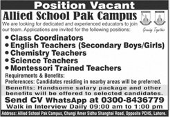 Allied School Lahore Pakistan Pakistan has announced new job opportunities for eligible and qualified candidates in 2026. These vacancies are open for individuals who are looking for jobs and want to build a professional career in a growing organization. Apply Confidently before the closing date.