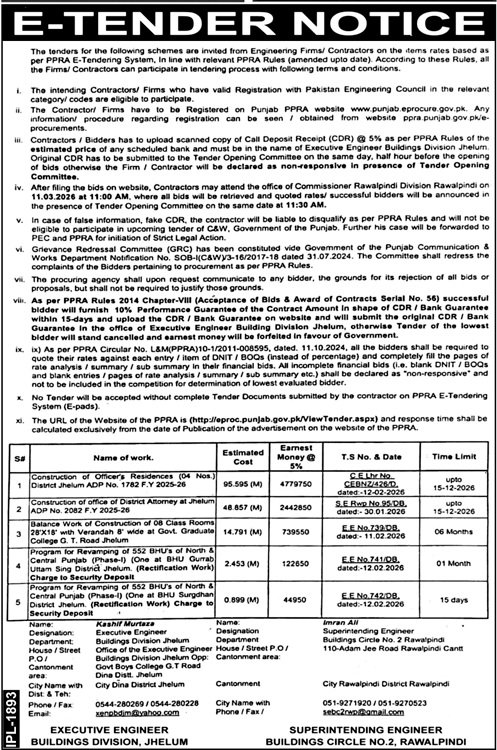 Building Department Rawalpindi Pakistan has officially announced a public tender for the procurement of services / supply of goods / execution of development works. This tender is invited under the applicable PPRA rules and government procurement regulations.