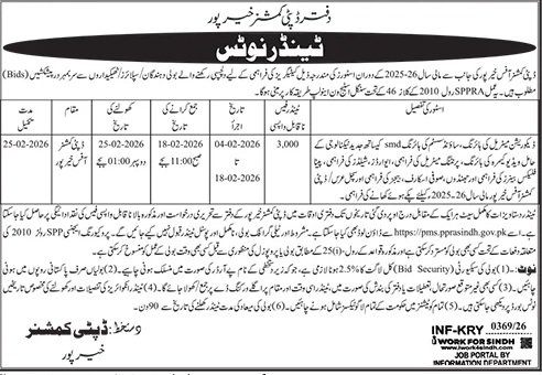 Deputy Commissioner Office Khairpur Pakistan – Tender dated 03, Feb 2026