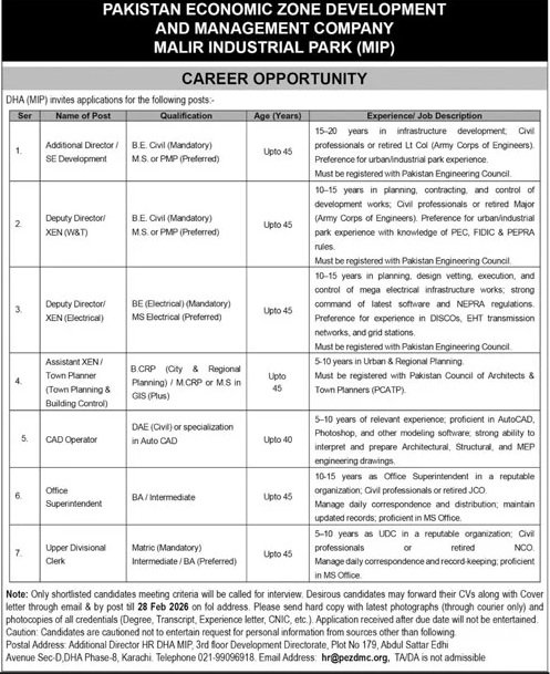 DHA (MIP) Pakistan has announced new job opportunities for eligible and qualified candidates in 2026. These vacancies are open for individuals who are looking for jobs and want to build a professional career in a growing organization. Apply Confidently before the closing date 28 feb 2026.