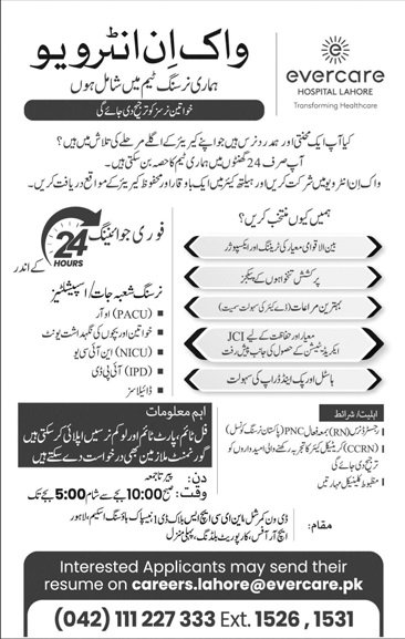 Evarcare Hopital Lahore Pakistan Jobs 2026 – Apply Confidently (Posted Date: 16, Feb)
