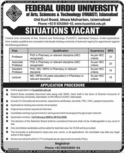 Federal Urdu University Islamabad Pakistan has announced new job opportunities for eligible candidates. These jobs are available for individuals who are looking to build a stable and professional career in Pakistan. Candidates from relevant educational backgrounds are encouraged to apply before the closing date. This job advertisement is suitable for both experienced professionals and fresh candidates, depending on the position.