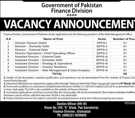 Finance Division GOP Islamabad Pakistan has announced new job opportunities for eligible and qualified candidates in 2026. These vacancies are open for individuals who are looking for jobs and want to build a professional career in a growing organization. Apply Confidently before the closing date 08, March 2026.