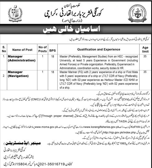 Fishiries Harbour Authority Karachi Pakistan has announced new job opportunities for eligible candidates. These jobs are available for individuals who are looking to build a stable and professional career in Pakistan. Candidates from relevant educational backgrounds are encouraged to apply before the closing date. This job advertisement is suitable for both experienced professionals and fresh candidates, depending on the position.