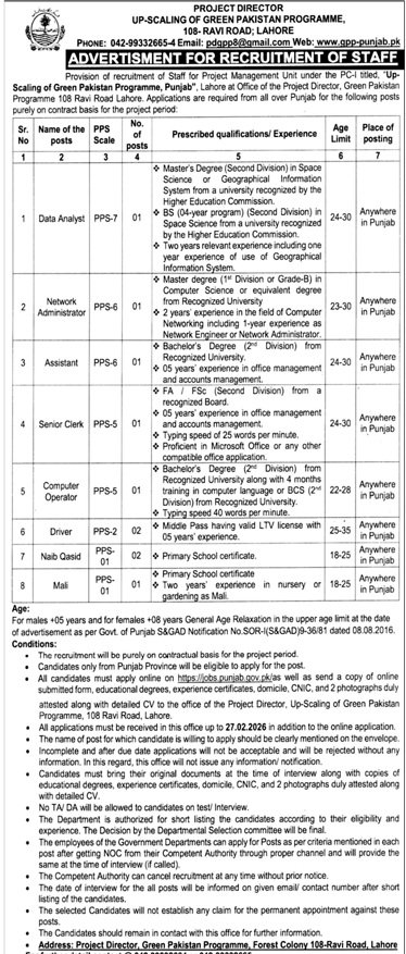 Green Pakistan Programme Lahore Pakistan has announced new job opportunities for eligible candidates. These jobs are available for individuals who are looking to build a stable and professional career in Pakistan. Candidates from relevant educational backgrounds are encouraged to apply before the closing date. This job advertisement is suitable for both experienced professionals and fresh candidates, depending on the position.