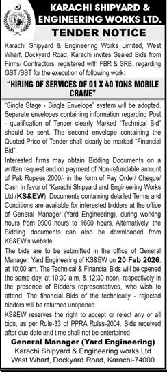 Karachi Shipyard & Engineering Works Ltd Pakistan has invited sealed bids from eligible firms, contractors, suppliers, and companies for the procurement of goods, services, or works as mentioned in this tender notice. This tender is issued in accordance with applicable procurement rules and is open to qualified bidders who meet the eligibility criteria.