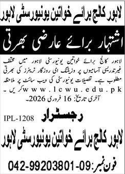 Lahore College for Women Lahore Pakistan Jobs 2026 – Apply Online (Posted Date: 01, Feb)