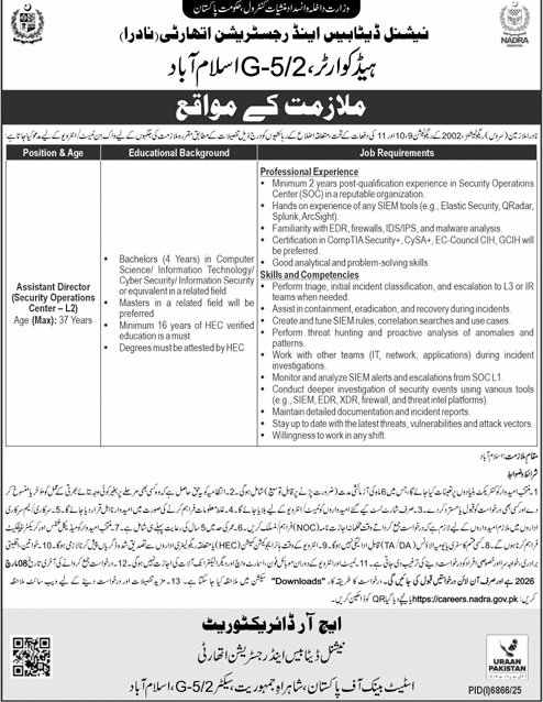 NADRA Islamabad Pakistan has announced new job opportunities for eligible and qualified candidates in 2026. These vacancies are open for individuals who are looking for jobs and want to build a professional career in a growing organization. Apply Confidently before the closing date 08-03-2026.