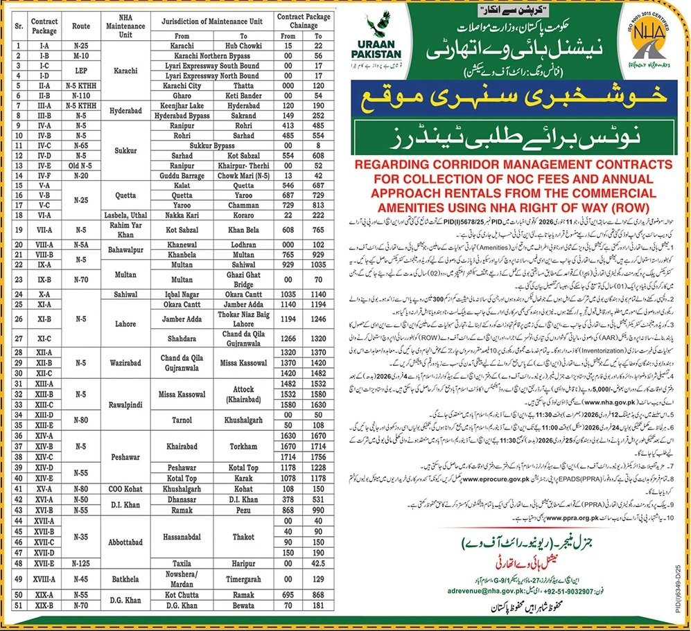 NHA Islamabad Pakistan – Tender dated 03, Feb 2026