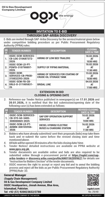 Oil & Gas Development Company Ltd Karachi Pakistan – Tender dated 03, Feb 2026