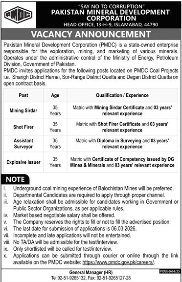 Pakistan Mineral Development Corporation Islamabad Jobs 2026 – Apply Confidently (Posted Date: 16, Feb)