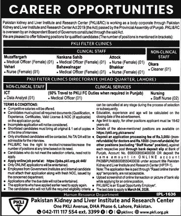PKLI&RC Lahore Pakistan has announced new job opportunities for eligible and qualified candidates in 2026. These vacancies are open for individuals who are looking for jobs and want to build a professional career in a growing organization. Apply Confidently before the closing date 04, March 2026.