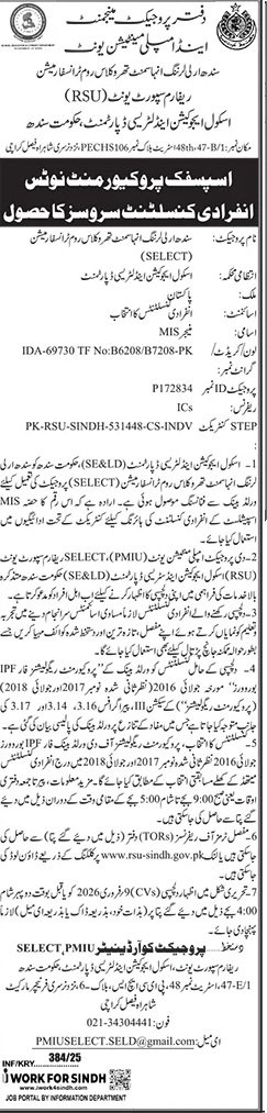 - Organization Name: School Education & Litteracy Department Karachi Sindh Pakistan