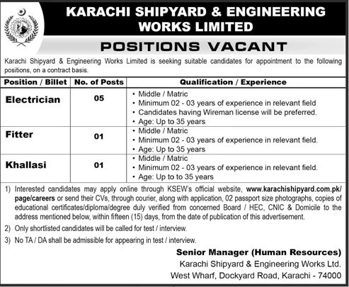 Shipyard & Engineering Works Karachi Pakistan has announced new job opportunities for eligible candidates. These jobs are available for individuals who are looking to build a stable and professional career in Pakistan. Candidates from relevant educational backgrounds are encouraged to apply before the closing date. This job advertisement is suitable for both experienced professionals and fresh candidates, depending on the position.