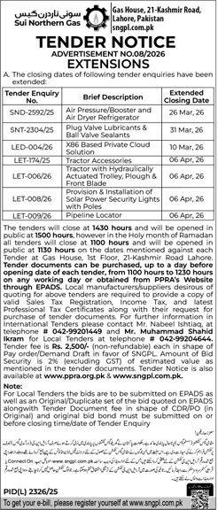 SNGPL Lahore Pakistan has officially announced a public tender for the procurement of services / supply of goods / execution of development works. This tender is invited under the applicable PPRA rules and government procurement regulations.