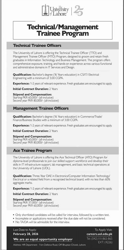 The University of Lahore Pakistan has announced new job opportunities for eligible and qualified candidates in 2026. These vacancies are open for individuals who are looking for jobs in Lahore and want to build a professional career in a growing organization. Apply Confidently before the closing date.