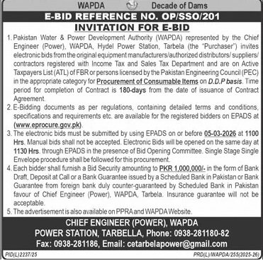 WAPDA Islamabad Pakistan – Sealed Bids Invited – Tender Notice dated 16, February 2026
